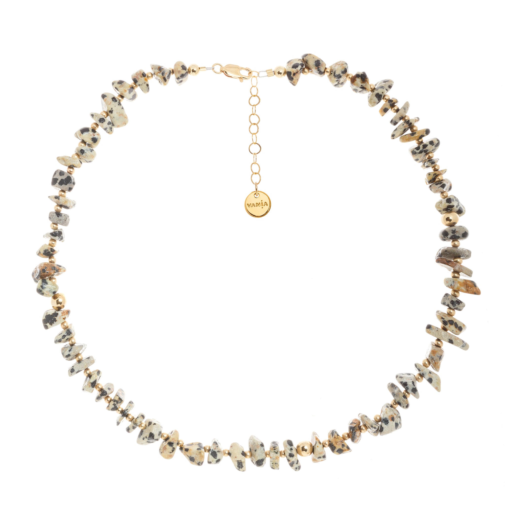 The Amuleto Dalmatian Jasper Choker is crafted with Dalmatian Jasper chip and elevated with 14karat gold-filled beads. Each bead is threaded by hand individually with lots of patience, love & happy thoughts resulting in a piece that truly shines.