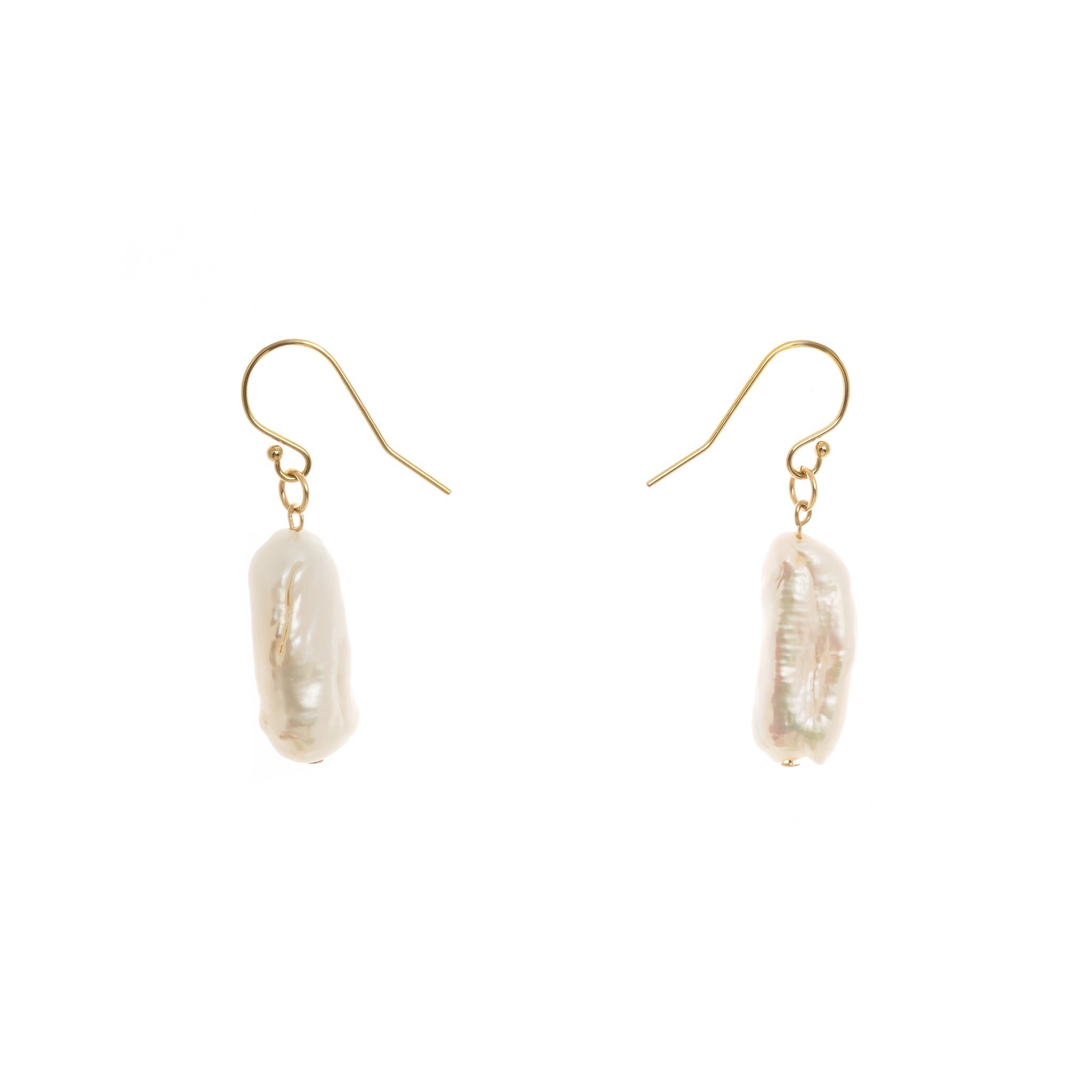 These earrings feature a unique pair of baroque freshwater pearl cuboids.