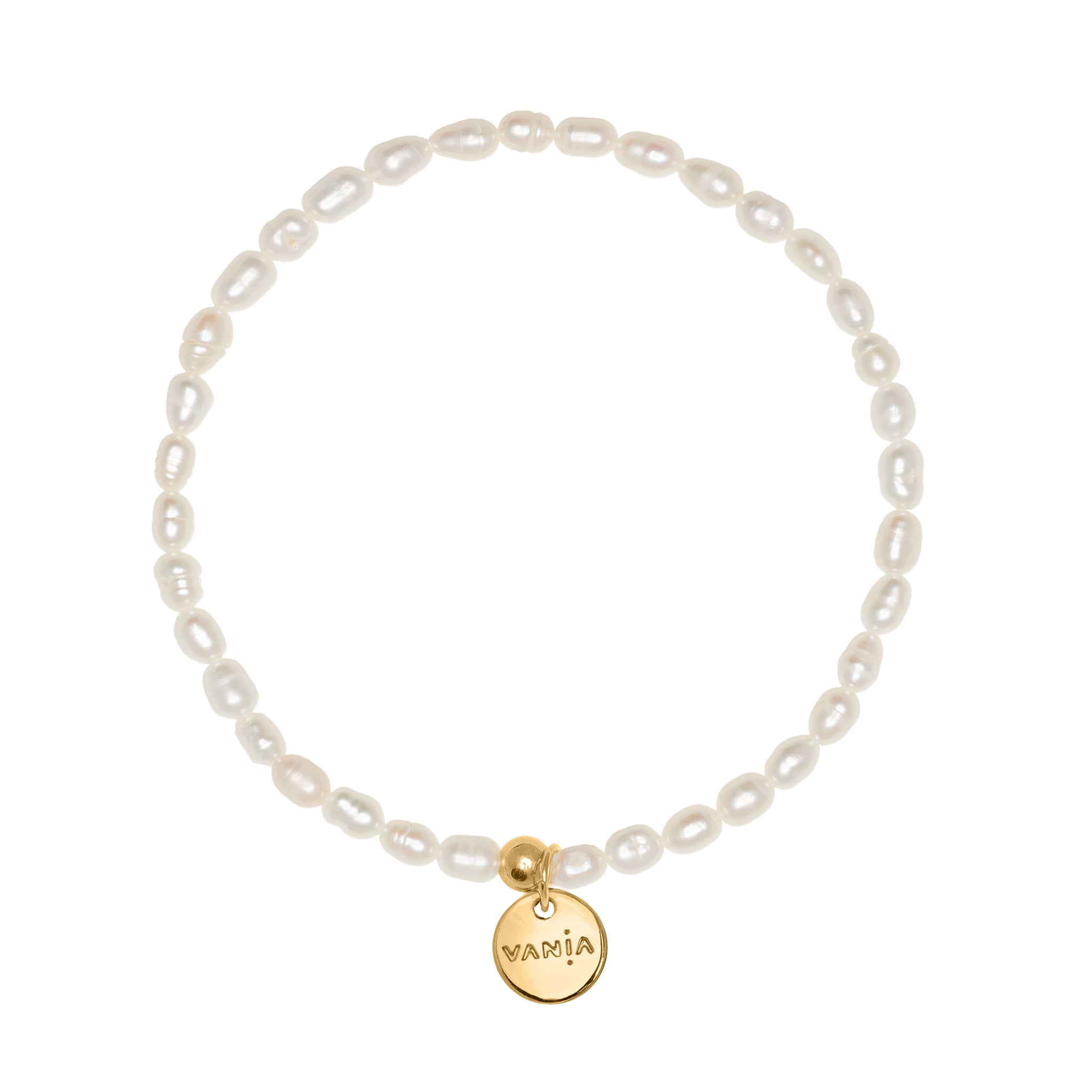 The Pampatar Bracelet features a small sized rice shaped freshwater pearl. This style is hand threaded on an elastic cord. Choose in between Gold or Silver finish.
